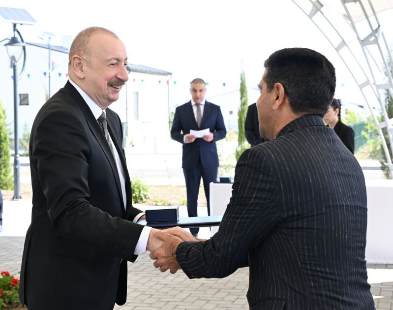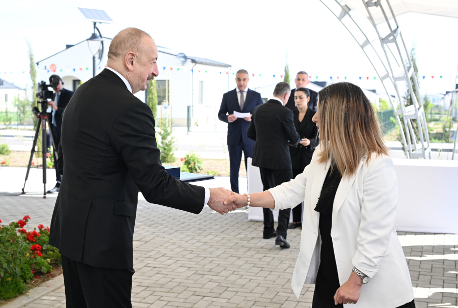 / / Prezident İlham Əliyev Ağdamın Kəngərli kəndinə köçən sakinlərlə görüşüb, onlara evlərin açarlarını təqdim edib