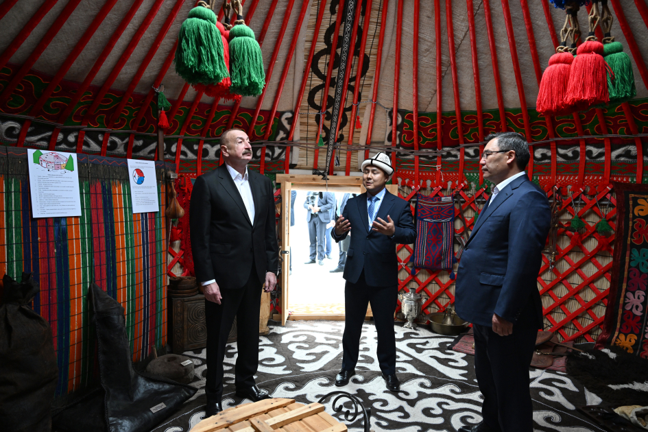 Əvvəlcə prezidentlər məktəbin həyətində quraşdırılan yurtaya baxdılar. Səyyar yaşayış yeri kimi asanlıqla qurulub-sökülən yurta köçəri həyat tərzi üçün nəzərdə tutulur. Hazırda Mərkəzi Asiyada turizm istiqaməti kimi bir çox türk xalqları yurta turizmini inkişaf etdirirlər.