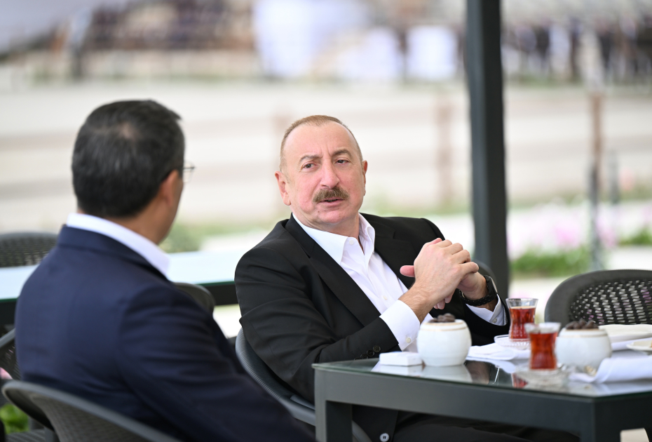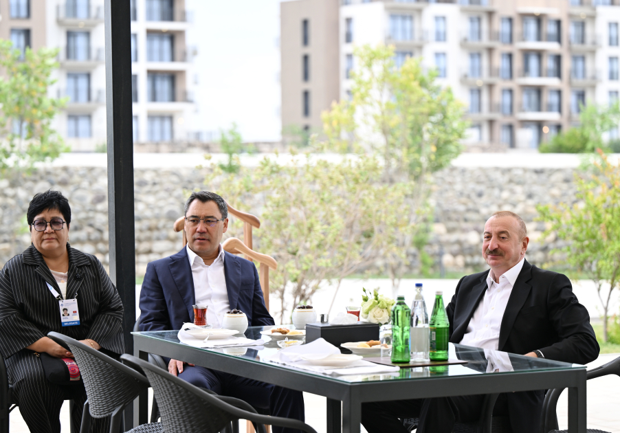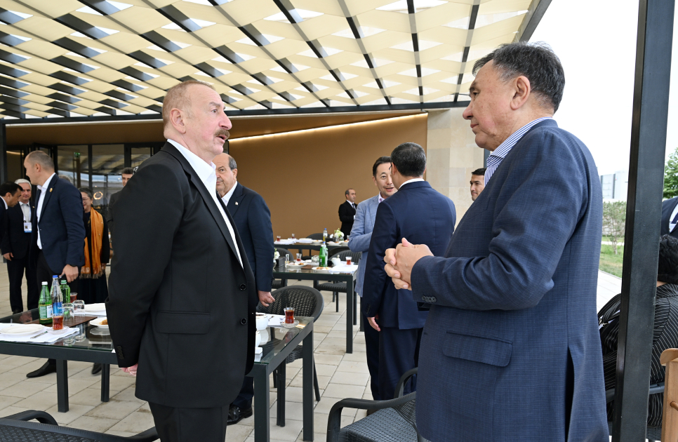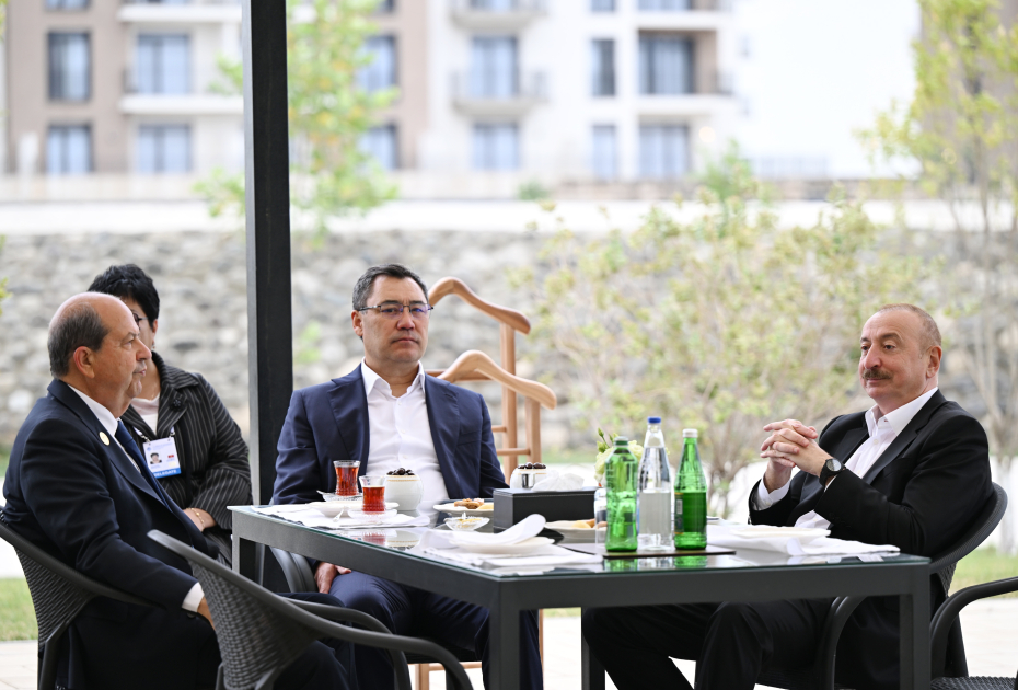AZƏRTAC xəbər verir ki, əvvəlcə Azərbaycan Prezidenti və qonaqlar çay süfrəsi arxasında söhbət etdilər.