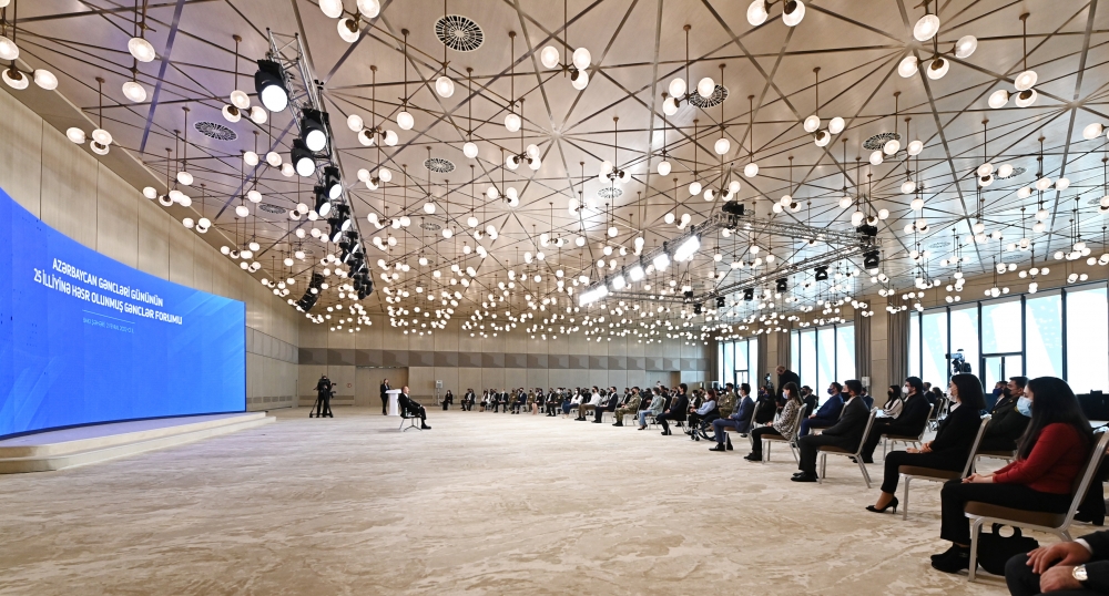 В Молодежном форуме, организованном во Дворце «Гюлистан», приняли участие молодые предприниматели, участники государственных программ, молодые члены семей бывших вынужденных переселенцев, шехидов, участники Отечественной войны, лица, отличившиеся в образовании и социальной инклюзивной деятельности.