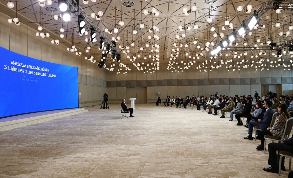В Азербайджане люди в возрасте до 29 лет считаются молодежью. Сегодня самому, если так можно сказать, взрослому молодому человеку во время моего первого избрания на пост Президента было 11 лет. То есть это – реальность. В период своей деятельности я старался, чтобы мы проделали больше работы, связанной с воспитанием молодежи. Я очень рад и горжусь тем, что большинство тех, кто шел вперед за Родину, за землю, были представителями молодежи. Это – источник гордости для каждого из нас, потому что выросло такое молодое поколение, которое, даже не видя Карабаха, этой горькой истории, шло на смерть за Карабах, за Родину, за национальное достоинство, стали шехидами, гази. Они приумножили славу нашей победоносной армии. Если бы не было этой политики, если бы молодежь не была воспитана в духе патриотизма, то неизвестно, какими бы могли быть итоги войны.