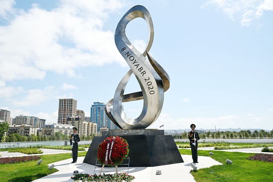 Daha sonra Zəfər parkında fəxri qarovulun iştirakı ilə Zəfər abidəsinin önünə əklil qoyulub.
