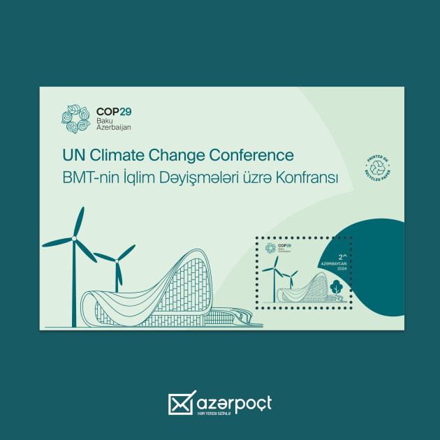 İlk buraxılan marka isə Azərbaycanda təşkil olunan BMT-nin İqlim Dəyişmələri üzrə Çərçivə Konvensiyasının Tərəflər Konfransının 29-cu sessiyasına həsr olunub. Tədbirin ölkəmiz üçün əhəmiyyətini nəzərə alaraq, buraxılan markaların COP29 tədbirinin konsepsiyasına və tələblərinə tam cavab verməsi “Azərpoçt” MMC tərəfindən təmin olunub. Tam innovativ sayılan bu buraxılışın əsas ideyası ondan ibarətdir ki, markalar 100 faiz təkrar emal edilmiş materiallar əsasında çap olunub.