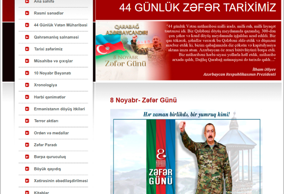 Kitabxanadan AZƏRTAC-a bildirilib ki, bazada “Rəsmi sənədlər”, “10 Noyabr Bəyanatı”, “Müsahibə və çıxışlar”, “Xronologiya” kimi bölmələrlə yanaşı, “44 günlük Vətən müharibəsi”, “Vətən müharibəsi - qəhrəmanlıq salnaməmiz”, “Vətən müharibəsi - tarixi Zəfərimiz” kimi məqalələrin tam mətni də yer alır.