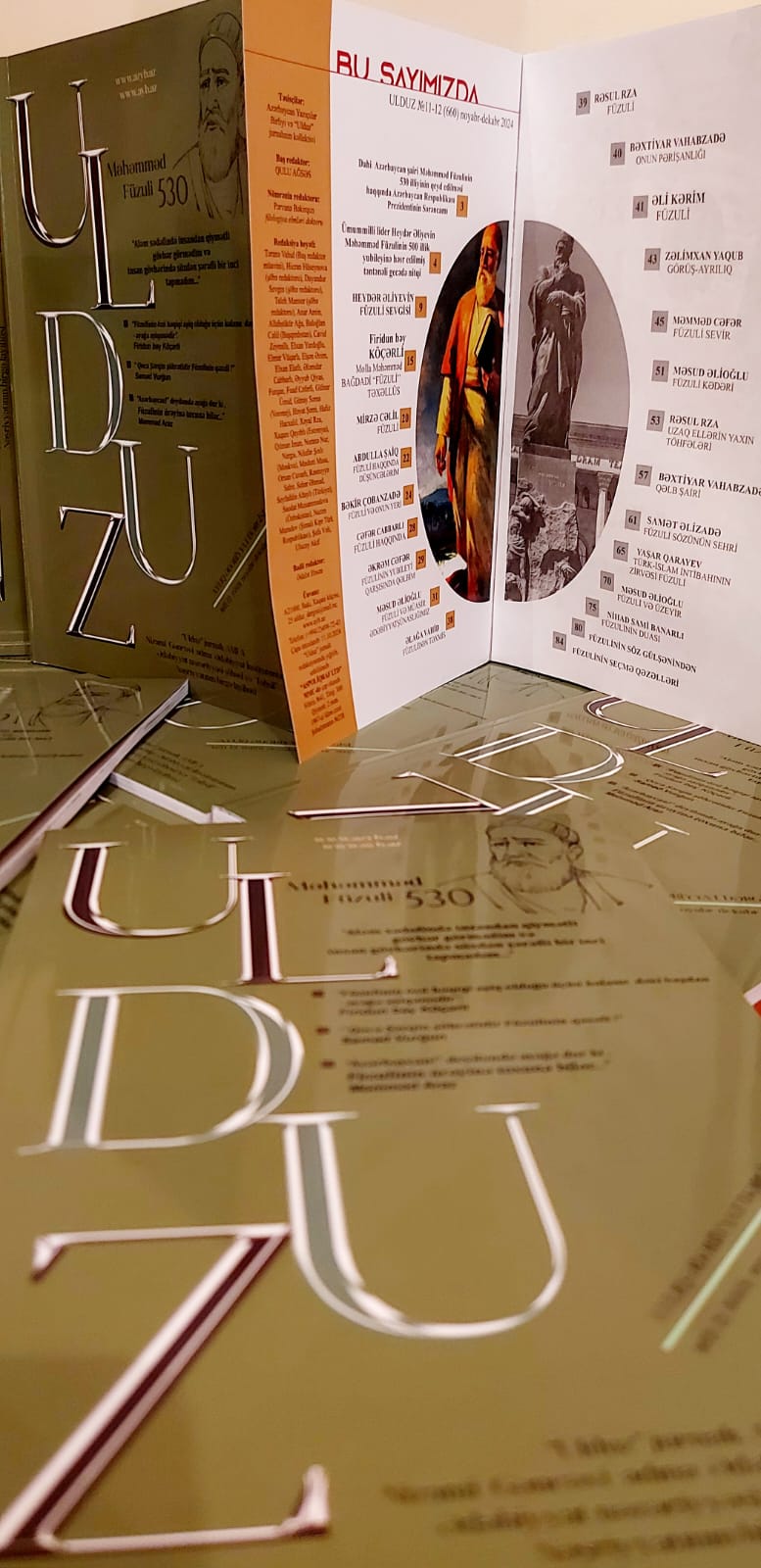 “Ulduz” jurnalının noyabr-dekabr sayı dahi Azərbaycan şairi Məhəmməd Füzulinin 530 illik yubileyinə həsr olunub. Jurnal “Dahi Azərbaycan şairi Məhəmməd Füzulinin 530 illiyinin qeyd olunması haqqında Azərbaycan Respublikası Prezidentinin Sərəncamı” ilə açılır. Sonrakı səhifədə Ümummilli lider Heydər Əliyevin Məhəmməd Füzulinin 500 illik yubileyinə həsr edilmiş təntənəli gecədə nitqi yer alır. Xüsusi buraxılışda “Heydər Əliyevin Füzuli sevgisi”, Firidun bəy Köçərlinin “Molla Məhəmməd Bağdadi “Füzuli” təxəllüs”, Mirzə Cəlilin “Füzuli”, Abdulla Şaiqin “Füzuli haqqında düşüncələrim”, Bəkir Çobanzadənin “Füzuli və onun yeri”, “Cəfər Cabbarlının “Füzuli haqqında”, Əkrəm Cəfərin “Füzulinin yubileyi qarşısında qəlbim”, Məsud Əlioğlunun “Füzuli və müasir ədəbiyyatşünaslığımız”yazıları yer alır. Bu sayda Əliağa Vahidin “Füzulidən təxmis”, Bəxtiyar Bahabzadənin “Onun pərişanlığı” və “Qəlb şairi” yazılarını oxuya bilərsiniz. Əli Kərimin“Füzuli”, Zəlimxan Yaqubun “Görüş –ayrılıq”, Məmməd Cəfərin “Füzuli sevir”, Rəsul Rzanın “Uzaq ellərin yaxın töhfələri”, Samət Əlizadənin “Füzuli sözünün sehri”, Yaşar Qarayevin “Türk-İslam intibahının zirvəsi Füzuli”, Nihad Sami Banarlının “Füzulinin duası” dahi şairin yaradıcılığından söz açır. Xüsusi buraxılışda Füzulinin söz gülşənindən seçmə qəzəllər təqdim olunur. “Dərgidə sərgi”də əsərləriylə Əfşan Rafaelqızıdır.