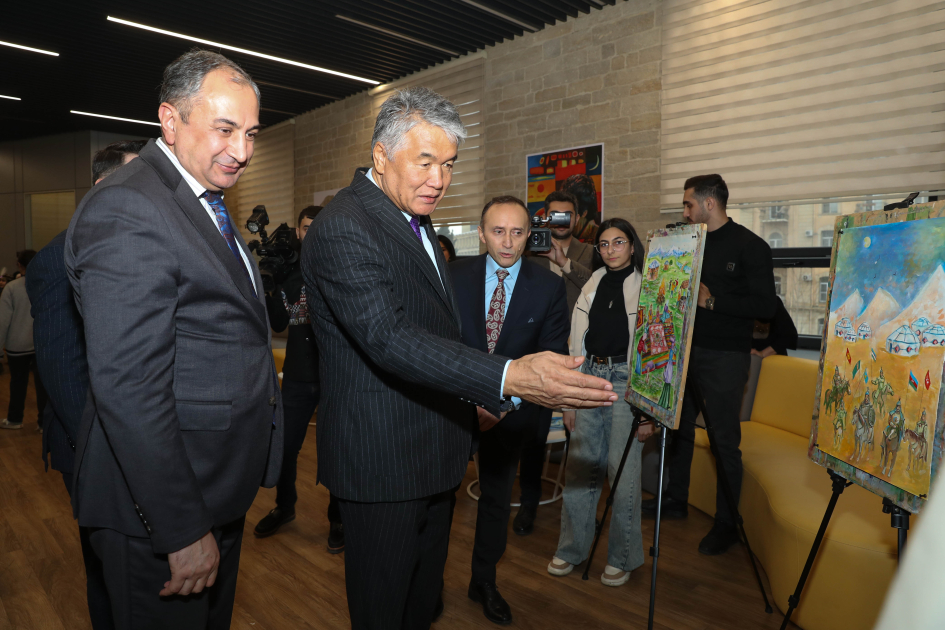 AZƏRTAC xəbər verir ki, qonaqlar əvvəlcə gənc rəssamların sərgilənən rəsm əsərləri ilə tanış olublar.