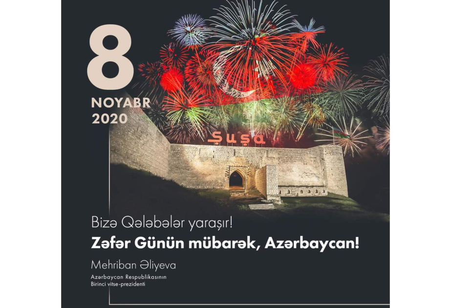 Azərbaycan Respublikasının Birinci vitse-prezidenti Mehriban Əliyeva rəsmi instaqram hesabında Zəfər Günü ilə bağlı paylaşım edib.