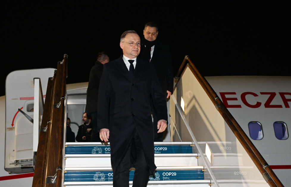 Polşa Respublikasının Prezidenti Andjey Duda noyabrın 12-də BMT-nin İqlim Dəyişmələri üzrə çərçivə Konvensiyasının Tərəflər Konfransının 29-cu sessiyasında (COP29) iştirak etmək məqsədilə Azərbaycan Respublikasına səfərə gəlib.