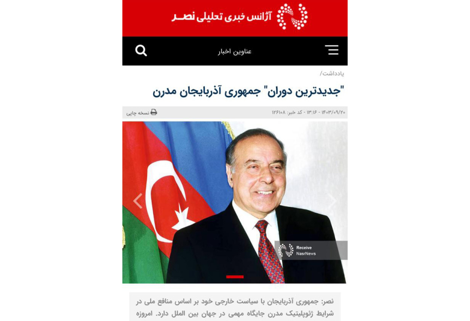 Təbriz mediası Ulu Öndər Heydər Əliyevin xatirəsinə həsr olunmuş məqalə dərc edib