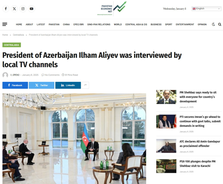 Pakistan mediası Azərbaycan Prezidentinin müsahibəsini geniş işıqlandırıb