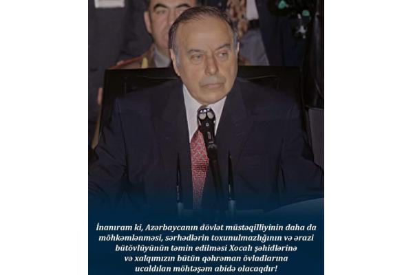 “...1994-cü il 26 fevral ərəfəsində mən Milli Məclisə təklif verdim. Milli Məclis qərar qəbul