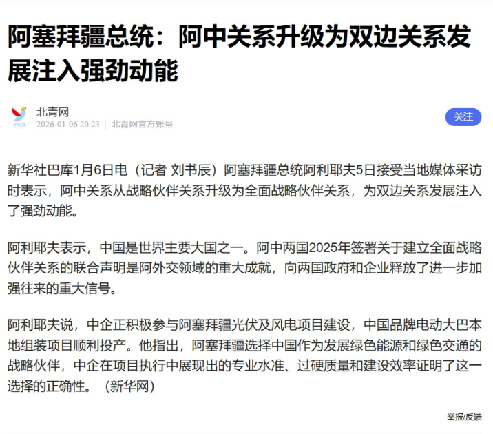 Qeyd edək ki, Sinxua agentliyinin sözügedən xəbərini Çinin bir çox media qurumları yayıb. Bundan başqa, Çinin bəzi ixtisaslaşmış sayları Prezident İlham Əliyevin iqtisadi mövzulardakı fikirlərindən də xəbərlər hazırlayıb.