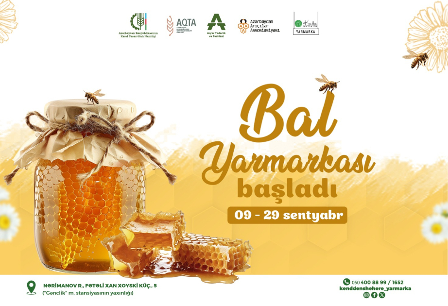 Kənd Təsərrüfatı Nazirliyi və Azərbaycan Arıçılar Assosiasiyasının birgə təşkilatçılığı ilə sentyabrın 9-dan 29-dək Bakıda arıçılıq məhsullarının 24-cü Respublika Sərgi-Satış Yarmarkası keçirilir.