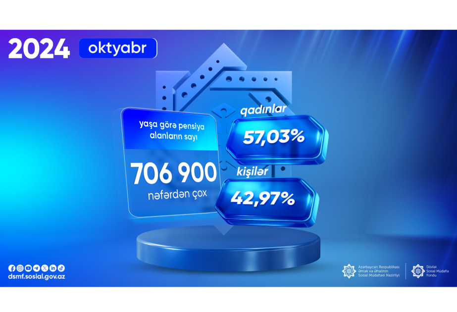 Bu ilin oktyabr ayında yaşa görə pensiya alanların sayı 706 min 900 nəfərdən çox olub.