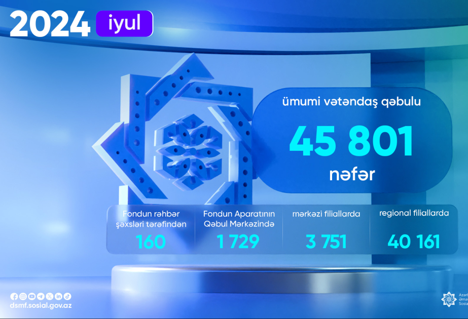 Bu barədə DSMF-nin mətbuat xidmətindən məlumat verilib. Həmin vətəndaşların 160-ı Fondun rəhbər şəxsləri tərəfindən, 1729-u Fondun Aparatının Qəbul Mərkəzində, 3 min 751-i mərkəzi, 40 min 161-i isə regional filiallarda qəbul edilib.