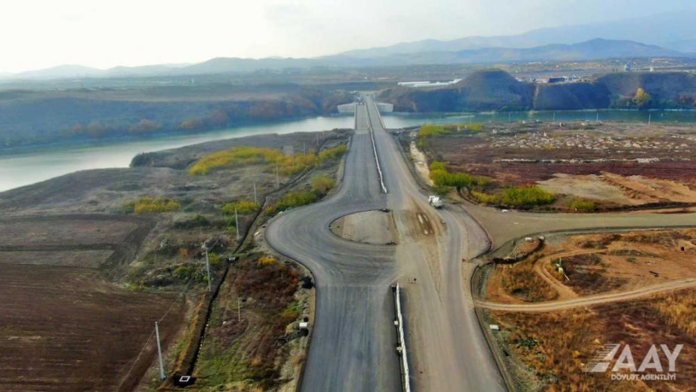 Birinci texniki dərəcəli olacaq avtomobil yolunda torpaq işlərinin icrası çərçivəsində yararsız qruntun çıxarılması, yatağın genişləndirilməsi, 26.5 metr enində yeni yol yatağının, yol əsasının tikintisi, suların ötürülməsini təmin etmək məqsədilə müxtəlif ölçülü suötürücü borular, su keçidləri, həmçinin zəruri olan yerlərdə yeraltı və kommunikasiya xətləri üçün nəzərdə tutulan ehtiyat keçidlərinin inşası tamamlanıb, asfalt-beton örtüyünün alt qatı döşənib.