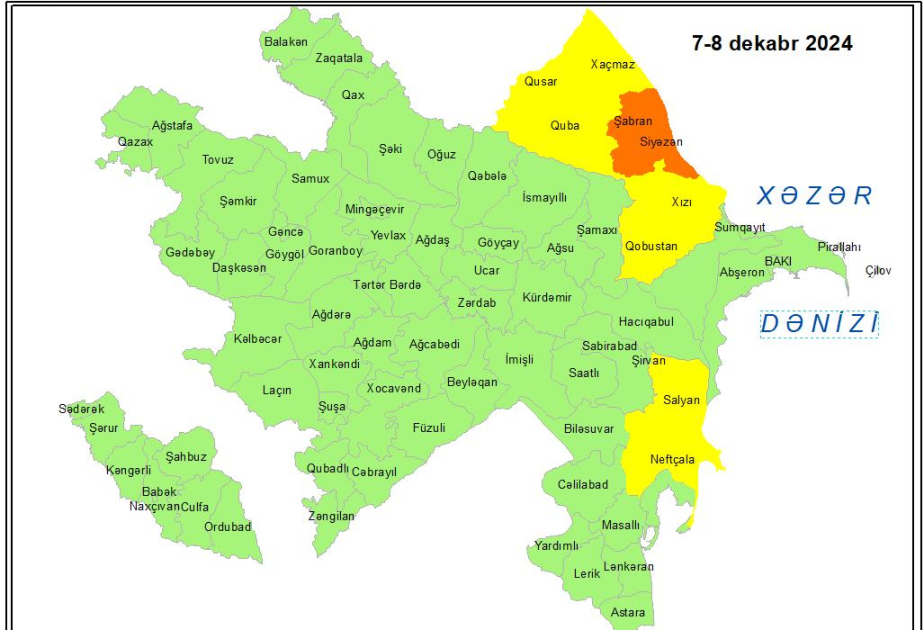 Milli Hidrometeorologiya Xidməti dekabrın 7-si axşam və 8-i bəzi bölgələrdə gözlənilən küləkli hava şəraiti ilə bağlı sarı və narıncı xəbərdarlıq verib.