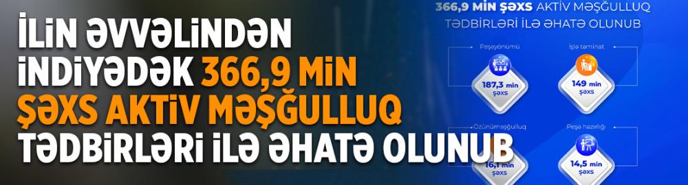 İlin əvvəlindən indiyədək 366,9 min şəxs aktiv məşğulluq tədbirləri ilə əhatə olunub