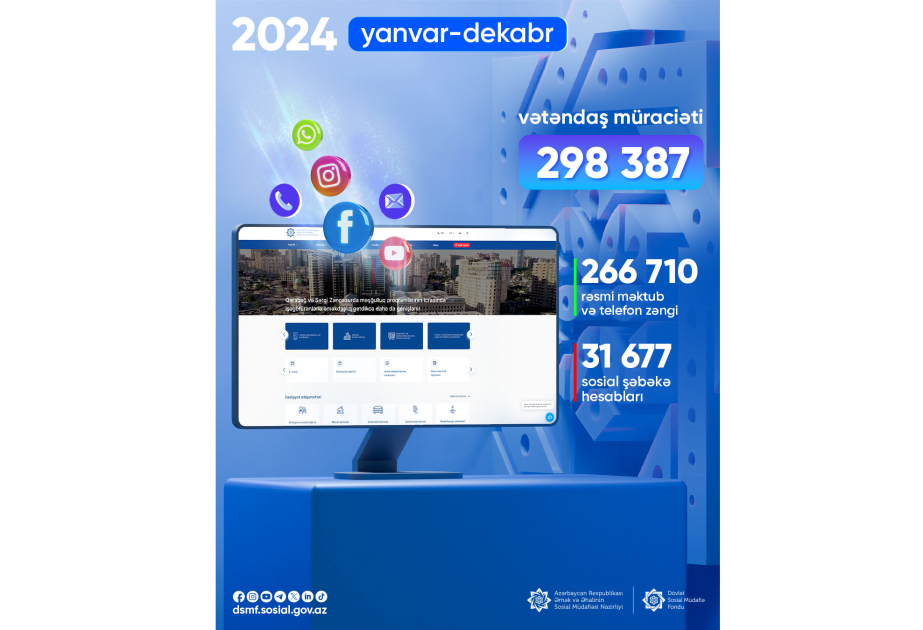 Ötən il Dövlət Sosial Müdafiə Fonduna ümumilikdə məktub, telefon zəngi və sosial şəbəkə hesabları vasitəsilə 298 min 387 vətəndaş müraciəti ünvanlanıb və cavablandırılıb.