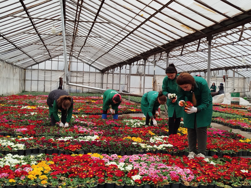 Gəncə şəhər Mənzil Kommunal Təsərrüfatı İstehsalat Birliyinin Yaşıllaşdırma şöbəsinin gülçülük sahəsində yerləşən müasir istixanalarda yaz güllərinin əkininə son hazırlıq işləri aparılır.