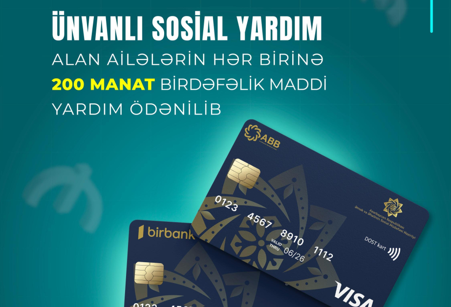 Prezident İlham Əliyevin Sərəncamına əsasən Dünya Azərbaycanlılarının Həmrəyliyi Günü və Yeni il bayramı münasibətilə 2025-ci il dekabrın 30-na ünvanlı sosial yardım alan ailələrin hər birinə 200 manat birdəfəlik maddi yardımın ödənişi təmin edilib.