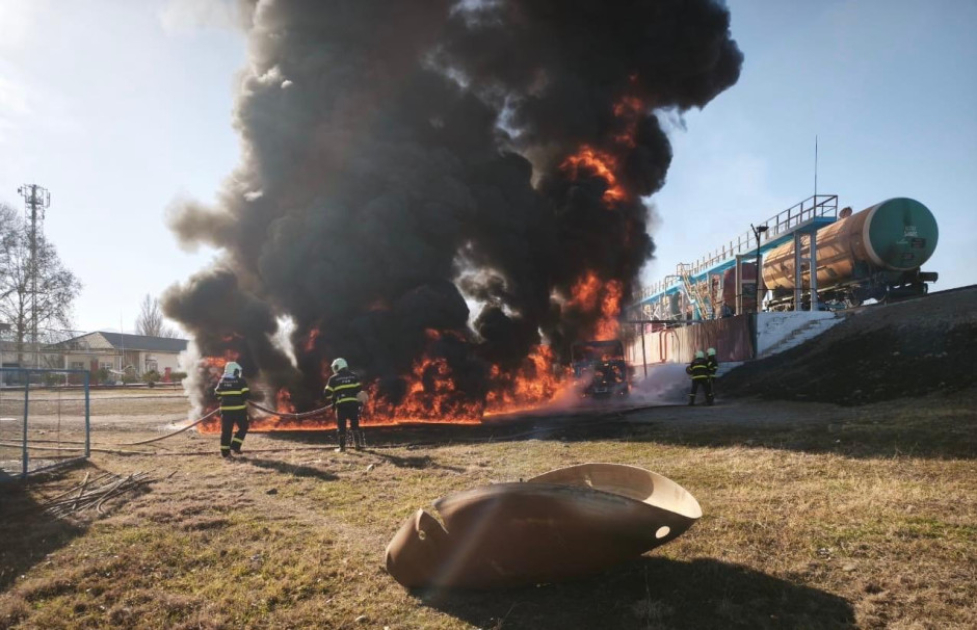 Yaxınlıqdakı yanacaq çənləri yanğından mühafizə olunub.
