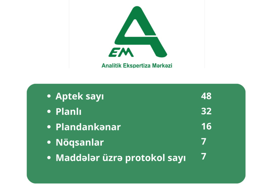 Bu ilin yanvar ayı ərzində Səhiyyə Nazirliyinin Analitik Ekspertiza Mərkəzi tərəfindən ümumilikdə 48 aptekdə yoxlama keçirilib.