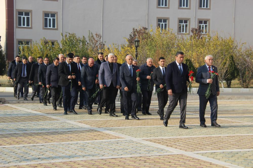 İştirakçılar əvvəlcə Heydərabad qəsəbəsində Ulu Öndər Heydər Əliyevin əzəmətlə ucaldılmış büstü önünə gül düzərək əziz xatirəsini yad edib.