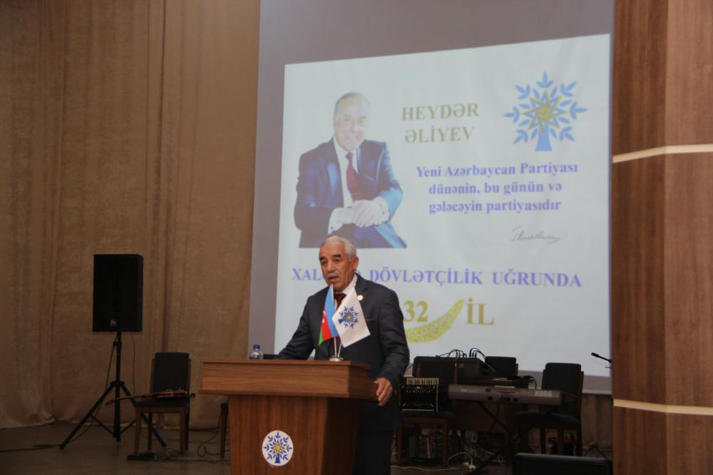 Tədbirdə Sədərək rayon İcra Hakimiyyəti Başçısının müavini, İctimai-siyasi və hümanitar məsələlər üzrə şöbə müdiri Pərviz Ağayev qeyd edib ki, 1992-ci il noyabrın 21-də Naxçıvan şəhərində Ulu Öndər Heydər Əliyevin rəhbərliyi ilə təsis edilən Yeni Azərbaycan Partiyası müstəqil dövlətçiliyimizin və ümummilli maraqların təmin edilməsi naminə cəmiyyətimizin bütün təbəqələrinin qüvvəsini səfərbər edən konstruktiv müxalimət partiyası kimi yaradılıb. Azərbaycan xalqı 1993-cü ilin iyulunda – ölkə “olum və ya ölüm” dilemması qarşısında qaldıqda özünün taleyini dahi şəxsiyyət Heydər Əliyevə həvalə etdi. Ulu Öndər xilaskarlıq missiyasını uğurla yerinə yetirdi, ölkəmizi, xalqımızı Milli Qurtuluş yoluna çıxartdı. 1995-ci ilin parlament seçkiləri nəticəsində partiya xalqın böyük dəstəyini qazanaraq müstəqil dövlətçiliyin əsas təminatçısı olan siyasi qüvvəyə - iqtidar partiyasına çevrildi.