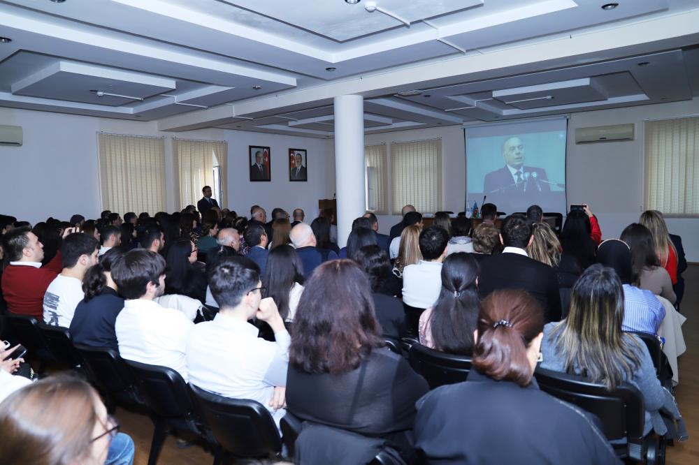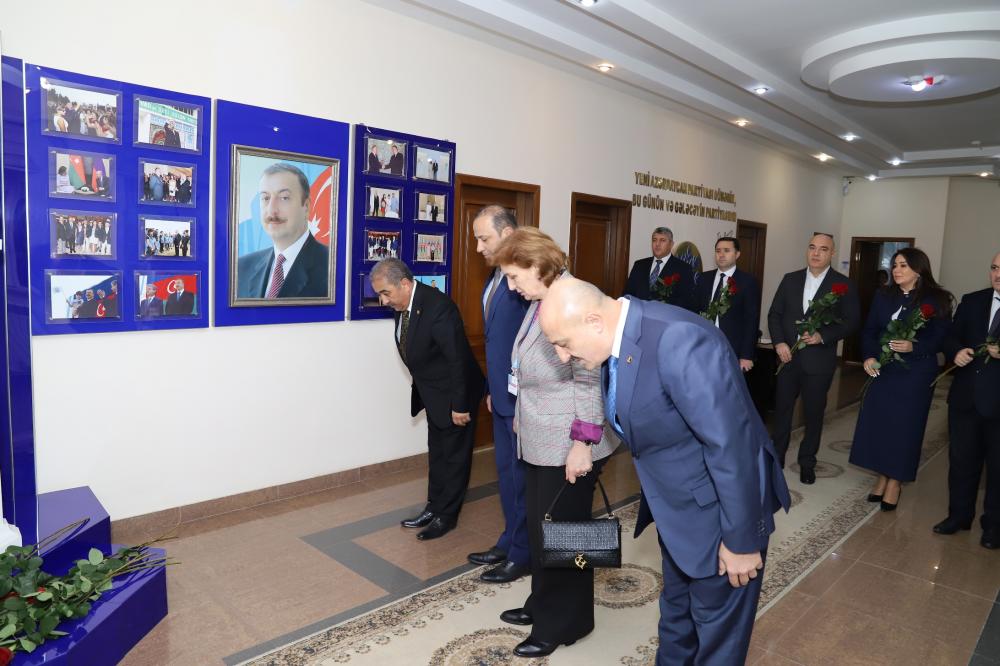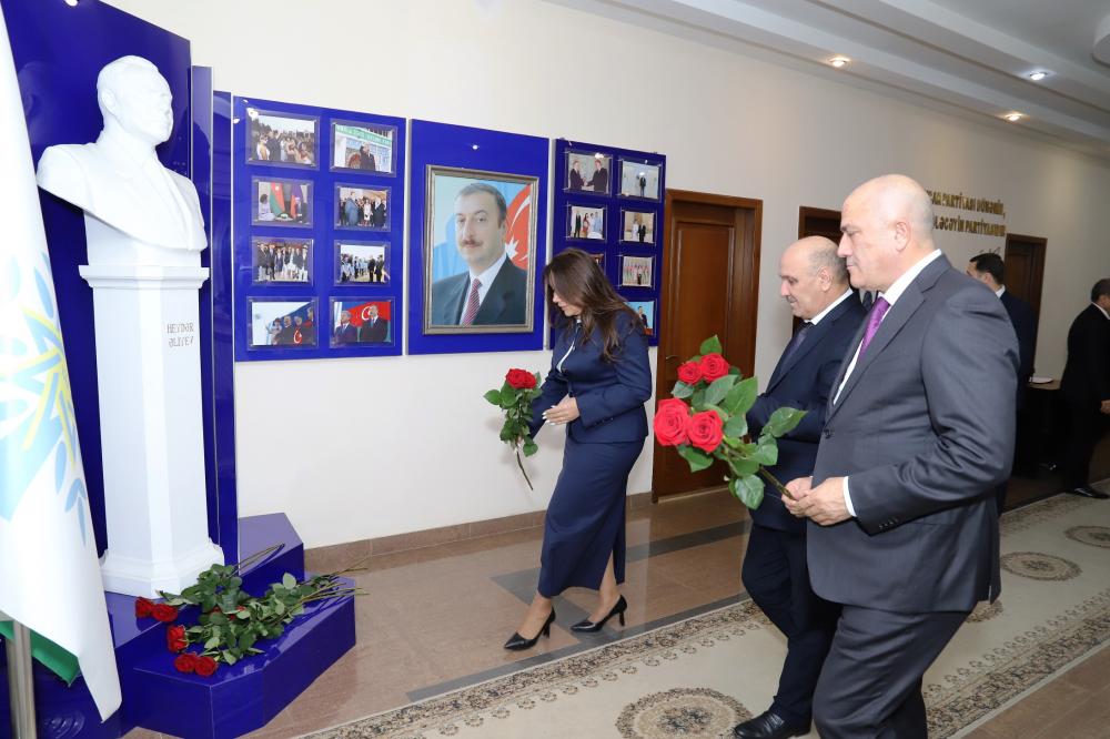 Əvvəlcə tədbir iştirakçıları tərəfindən Ümummilli lider Heydər Əliyevin abidəsinin önünə gül dəstələri düzülüb.