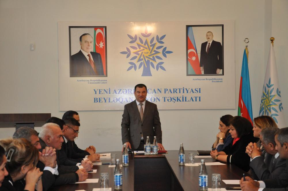 Çıxış edən Beyləqan Rayon İcra Hakimiyyəti başçısının müavini, Ərazi Partiya Təşkilatının sədri Yeganə Məmmədova bildirdi ki, 21 noyabr 1992-ci ildə Naxçıvan şəhərində 550 nəfər nümayəndənin iştirakı ilə Yeni Azərbaycan Partiyası təsis olundu və Ulu Öndər Heydər Əliyev Yeni Azərbaycan Partiyasının sədri seçildi. Ümummilli Lider Heydər Əliyevin rəhbərlik etdiyi Yeni Azərbaycan Partiyası qısa müddət ərzində təşkilatlandı, xalqın dəstəyi ilə 1993-cü ildə hakimiyyətə gəldi. Bu xalqın dahi rəhbərə böyük inamının, onun rəhbərlik etdiyi partiyaya dəstəyinin bariz ifadəsi idi. Yeni Azərbaycan Partiyası yaranmasaydı və Ulu Öndər Heydər Əliyev hakimiyyətə gəlməsəydi ölkəmiz tamamilə fərqli tale yaşayacaqdı. Ümummilli Lider Heydər Əliyevin hakimiyyətə gəlməsi Azərbaycanın bəlalardan xilas olmasına gətirib çıxardı. Xaos, anarxiya, iqtisadiyyatda tənəzzül aradan qaldırıldı. İslahatlar həyata keçirildi, separatizimin qarşısı alındı. Azərbaycanın bu gün ki, inkişafa gəlib çatması üçün əlverişli mühit yarandı.,