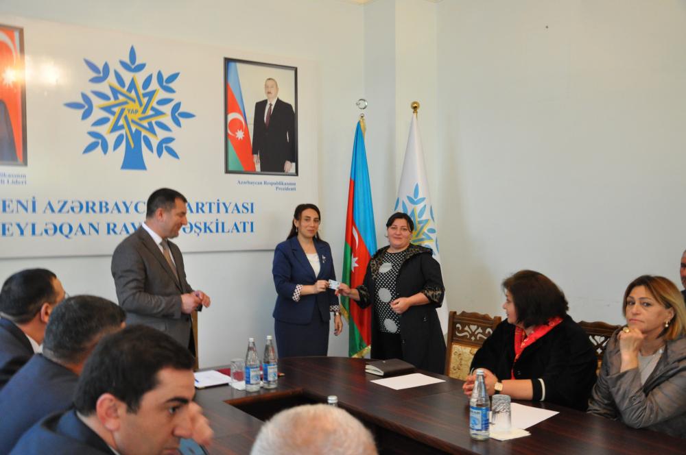 Tədbirin sonunda bir qrup gəncə yeni partiya vəsiqələri, bir qrup gəncə isə Rayon təşkilatının ictimai siyasi həyatında fəal iştirakına görə Təşəkkürnamə təqdim edildi.