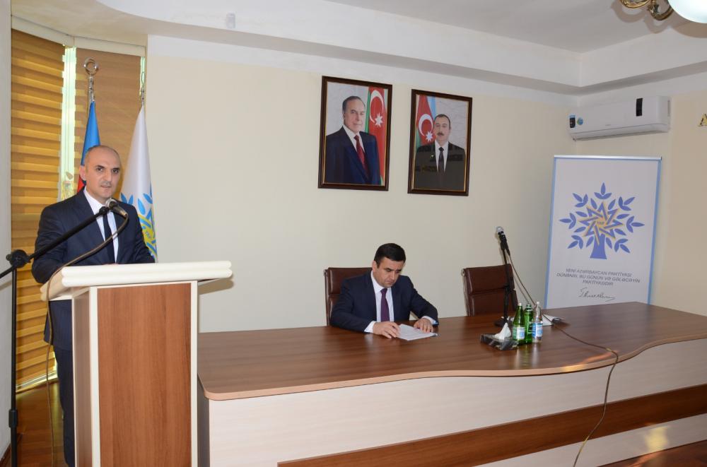 Saatlı rayon İcra Hakimiyyətinin başçısı Elmir Bağırov çıxış edərək, Yeni Azərbaycan Partiyasının Prezident İlham Əliyevin rəhbərliyi ilə inkişaf və qələbə yolunda əmin addımlarla irəlilədiyini bildirdi, qeyd etdi ki, Azərbaycan ərazi bütövlüyünü hərbi - siyasi yolla təmin etməklə öz qüdrətini bütün dünyaya nümayiş etdirdi. Prezident İlham Əliyevin rəhbərliyi ilə həyata keçirilən Heydər Əliyev siyasəti təkcə artıq tarixə çevrilmiş nailiyyətlərimizin deyil, həm də gələcək uğurların həlledici əsasıdır.