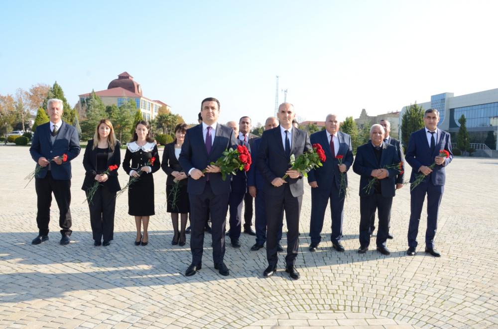 Əvvəlcə tədbir iştirakçıları Ulu Öndər Heydər Əliyevin abidəsini ziyarət edib, önünə gül dəstələri düzüb, xatirəsinə dərin ehtiram ifadə ediblər.