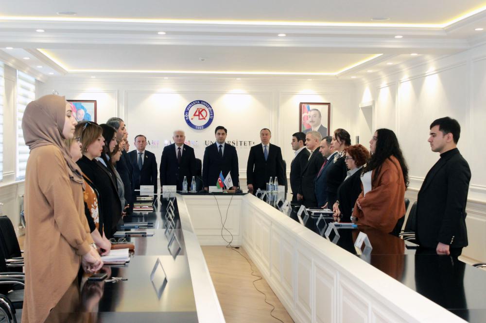 Bakı Avrasiya Universitetinin konfrans zalında keçirilən tədbirdə ilk öncə Azərbaycan Respublikasının Dövlət Himni səsləndirilib, sonra Ümummilli lider Heydər Əliyevin və Vətənimizin bütövlüyü uğrunda canından keçmiş şəhidlərimizin əziz ruhu bir dəqiqəlik sükutla yad edilib.