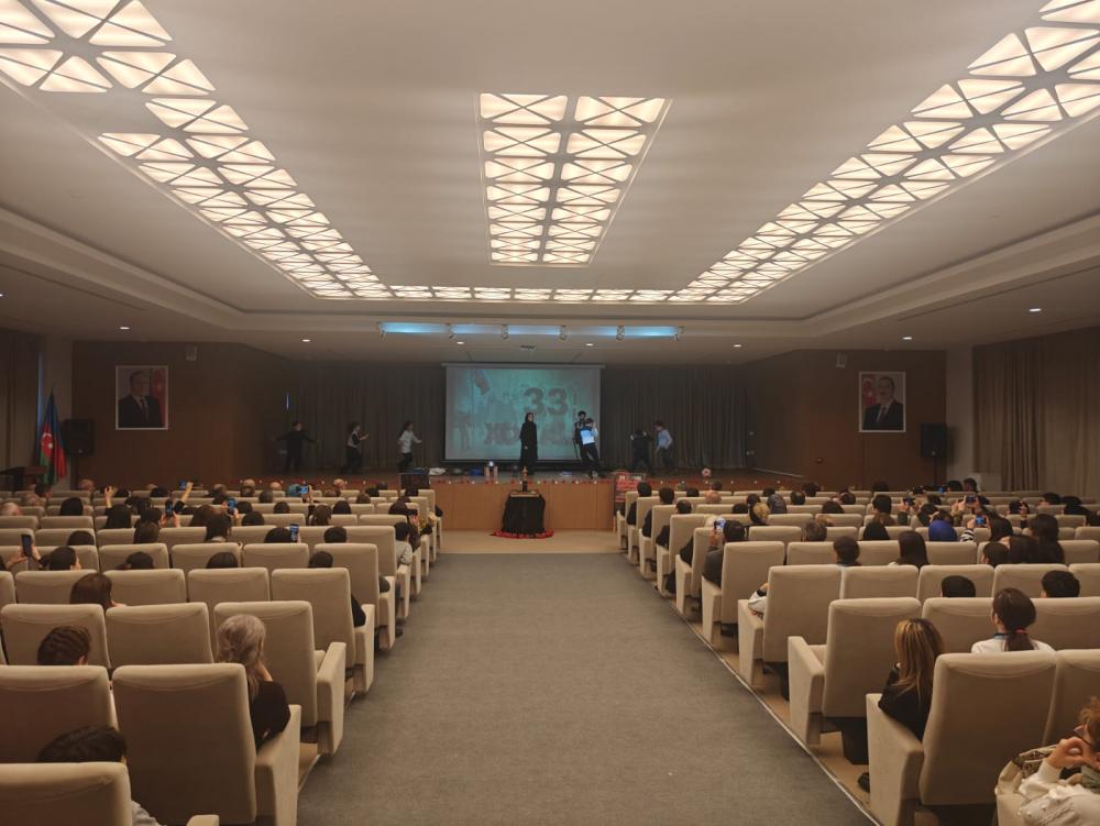 Tədbirdə şəhidlərimizin əziz xatirəsi bir dəqiqəlik sükutla yad edildikdən sonra Azərbaycan Respublikasının Dövlət Himni səsləndirilib. Xocalı Faciəsini əks etdirən videoçarx nümayiş etdirilib.