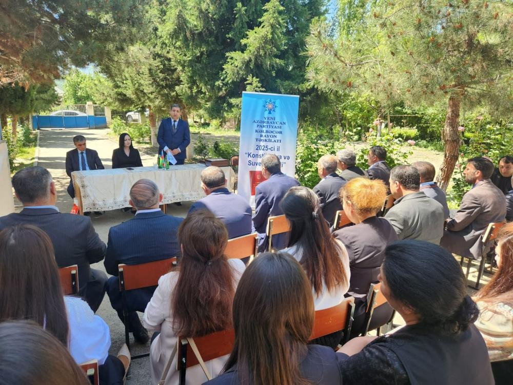 Yeni Azərbaycan Partiyası Kəlbəcər rayon təşkilatı Goranboy rayonun Meşəli kəndində fəaliyyət göstərən Şərqi Zəngəzur Regional Təhsil İdarəsinin Kəlbəcər rayon sektorunun Kəlbəcər rayon 100 nömrəli tam orta məktəb üzrə Ərazi Partiya təşkilatında “Konstitusiya və suverenlik ili” çərçivəsində 28 May Müstəqillik günü ilə bağlı 26 may 2025-ci il tarixdə "Prezident-xalq-ordu birliyi əbədi müstəqilliyin qarantıdır" mövzusunda tədbir keçirildi.