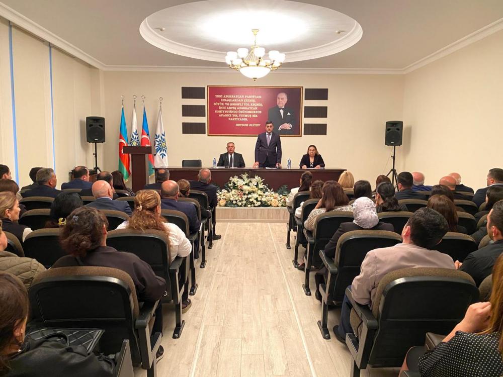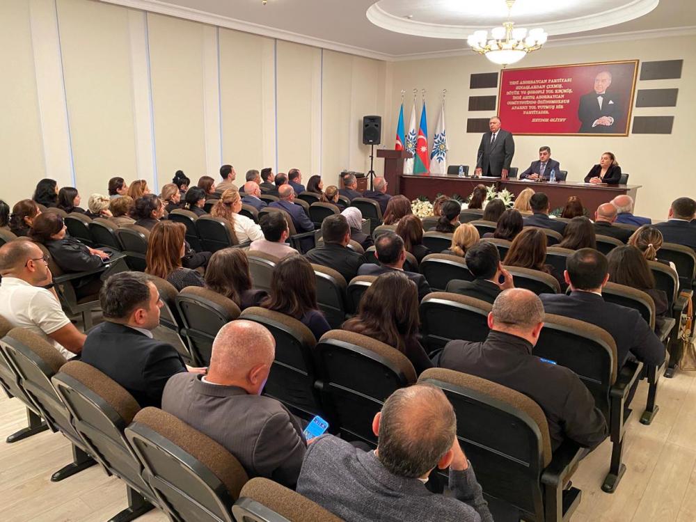 YAP Xəzər rayon təşkilatının inzibati binasında təşkil olunan tədbirdə ilk öncə qonaqlar Ulu öndər Heydər Əliyevin əziz xatirəsini yad edərək, abidəsi önünə güllər düzüblər. Akt zalında davam edən görüşdə Azərbaycan Respublikasının Dövlət Himni səsləndirilmiş, ulu öndər Heydər Əliyev və Vətənimizin ərazi bütövlüyü uğrunda canlarından keçən şəhidlərimizin əziz xatirəsi bir dəqiqəlik sükütla yad edilmişdir.