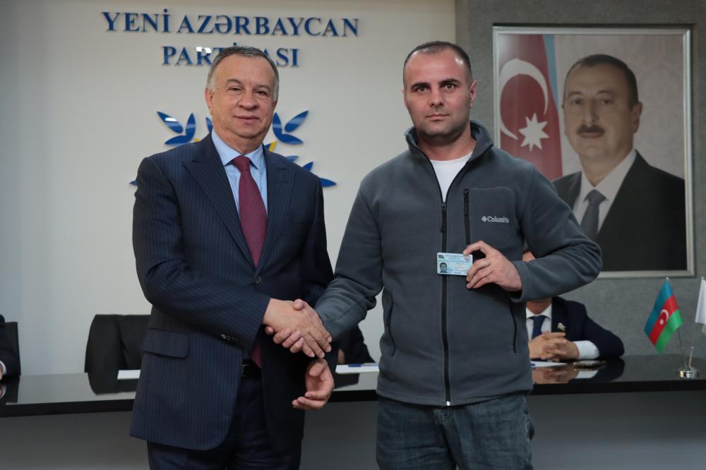 Sonra Yeni Azərbaycan Partiyası sıralarına yeni qəbul edilmiş şəxslərə üzvlük vəsiqələri təqdim edilib.