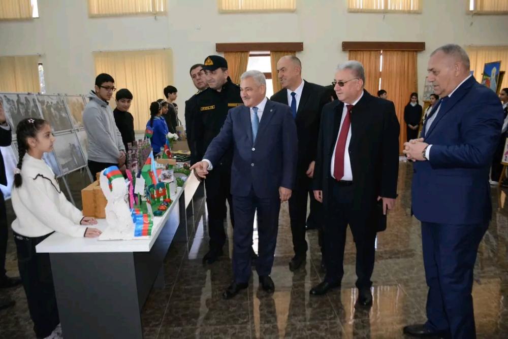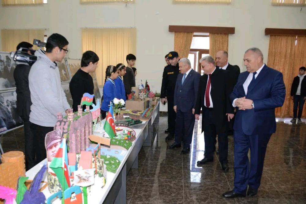 Daha sonra tədbir rayon Mədəniyyət Mərkəzində davam etdirilib. İştirakçılar mərkəzin foyesində gənclərin əl işlərindən ibarət sərgiyə baxış keçiriblər.