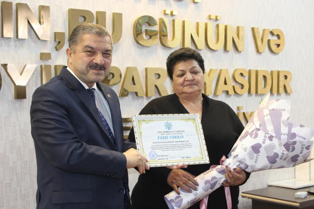 Çıxışlardan sonra yubiley yaşları tamam olan ƏPT sədrləri və partiya üzvlərinə, həmçinin tədbirdə şeir söyləyən məktəblilərə hədiyyələr verilib.
