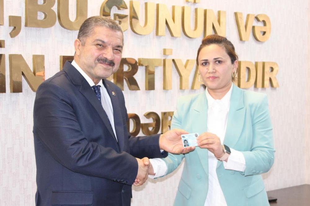 Sonda partiya sıralarına yeni qəbul edilən gənc üzvlərə partiya vəsiqələri təqdim olunub.
