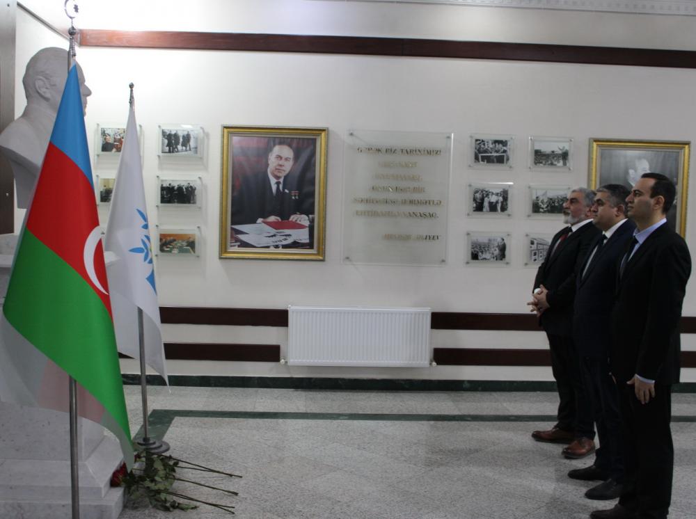Əvvəlcə müasir müstəqil Azərbaycan dövlətinin qurucusu, xalqımızın Ümummilli Lideri Heydər Əliyevin büstü ziyarət olunaraq əziz xatirəsi ehtiramla yad edilib.