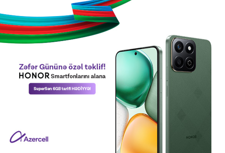 “Azercell” noyabr ayının 8-i Zəfər Gününə özəl kampaniyaya start verir. Kampaniya çərçivəsində "Azercell Eksklüziv" və diller mağazalarından “Honor” smartfonu və ya planşeti əldə edən müştərilərə “SuperSən6GB” tarif paketinə iki aylıq abunəlik hədiyyə edilir. Qeyd edək ki, kampaniya 229 manatdan başlayan cihazlara şamil olunur.