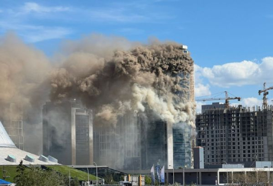Astanada "Xan Şatır" ticarət-əyləncə mərkəzinin yaxınlığında yerləşən çoxmərtəbəli binada yanğın baş verib.