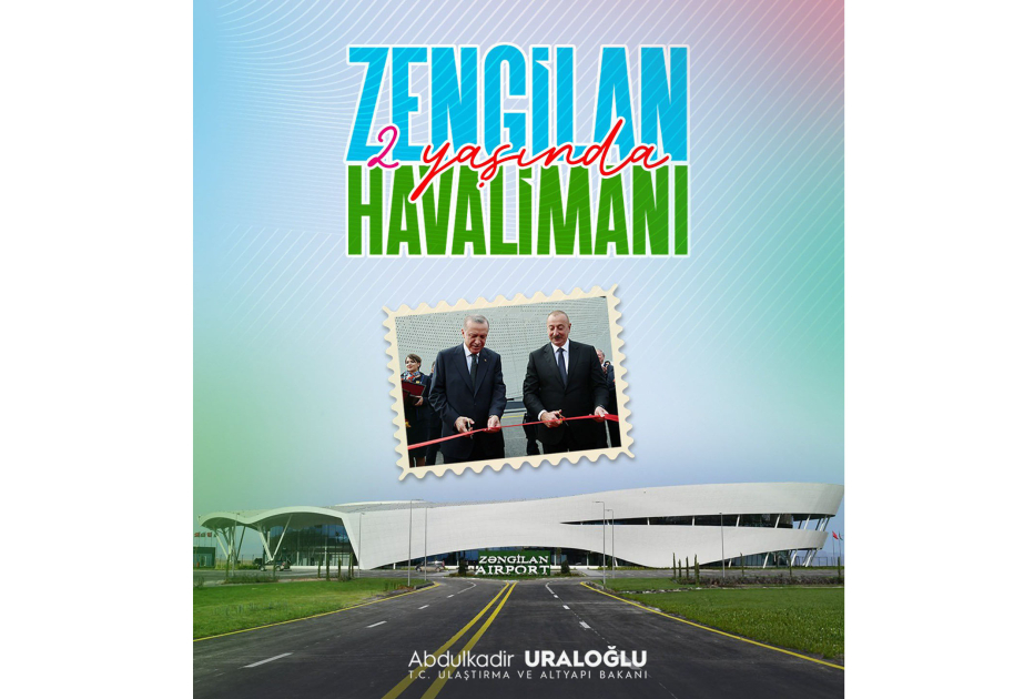 Türkiyənin nəqliyyat və infrastruktur naziri Abdulkadir Uraloğlu Zəngilan Beynəlxalq Hava Limanının açılışının ikinci ildönümü münasibətilə Azərbaycanı təbrik edib.