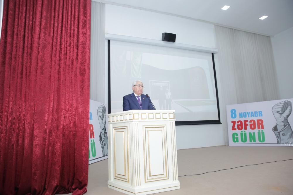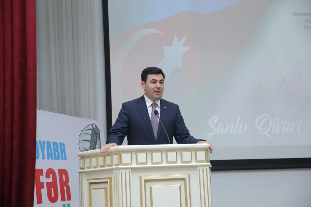 “Şanlı qürur tariximiz” adlı konfransda çıxış edən Milli Məclisin üzvü, Xaçmaz rayon İcra Hakimiyyətinin başçısı Elnur Rzayev və başqa natiqlər qeyd ediblər ki, Müzəffər Ali Baş Komandanımız İlham Əliyevin rəhbərliyi altında Vətən Müharibəsi və ondan sonrakı dövrdə Azərbaycan misilsiz hərbi, siyasi, diplomatik qələbələr qazanıb, ərazi bütövlüyümüz və suverenliyimiz tam təmin olunub.