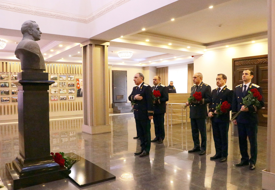 AZƏRTAC xəbər verir ki, əvvəlcə Baş Prokurorluğun rəhbərliyi Ümummilli Liderin büstünü ziyarət edib, önünə gül dəstələri qoyub.