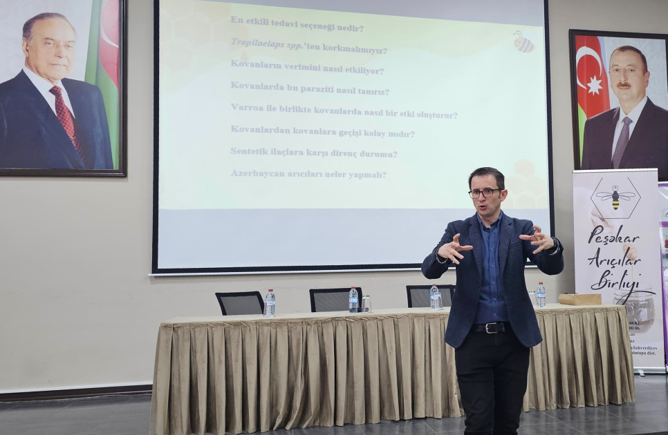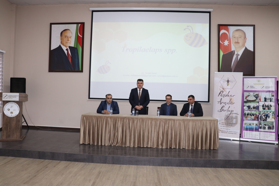 Peşə Təhsil Mərkəzindən AZƏRTAC-ın bölgə müxbirinə bildirilib ki, Türkiyənin Ankara Universitetinin Baytarlıq fakültəsinin araşdırmaçı asistenti Sedat Sevinin iştirak etdiyi təlimdə arı xəstəlikləri və zərərvericilər, arı ailələrinin qışlamaya hazırlığı və digər mövzulardan bəhs edilib.