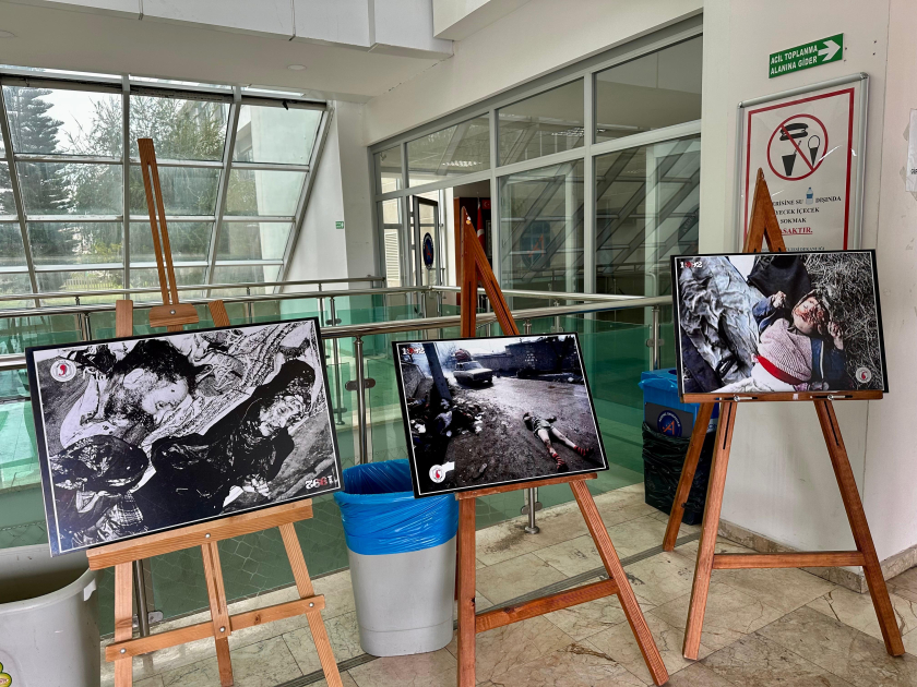Tədbir çərçivəsində Akdeniz Universitetinin təhsil fakültəsinin foyesində bəşəriyyətin ən dəhşətli qətliamlarından olan Xocalı soyqırımını əks etdirən sərgi açılıb.
